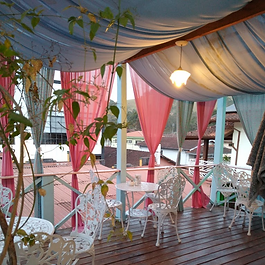 Local confortável, com mesas na area externa e interna